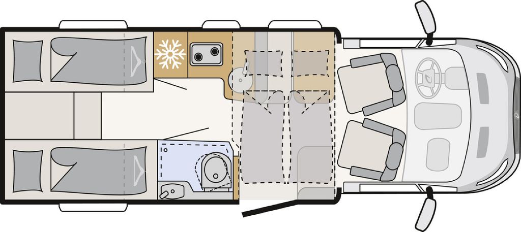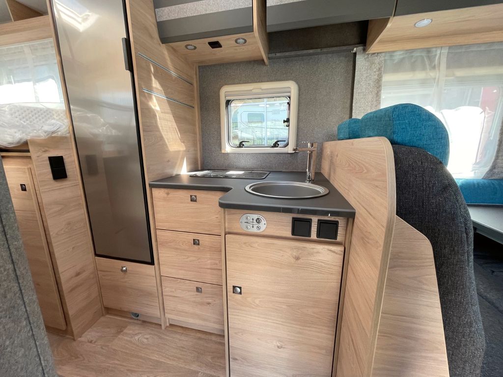 Hij heeft 2 enkele bedden en een elektrisch te bedienen hefbed (140cm x 200cm). Een grote koelkast (142 liter) met apart vriesvak (15 liter) mag natuurlijk niet ontbreken. En wat dacht U van de badkamer, compleet uitgerust met wasbak, cassettetoilet en douche.